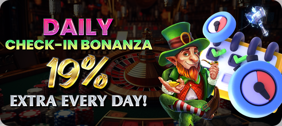 Check-in setiap hari dengan Damacai19 dan nikmati bonus extra 19% setiap hari! Jangan lepaskan ganjaran harian anda.
